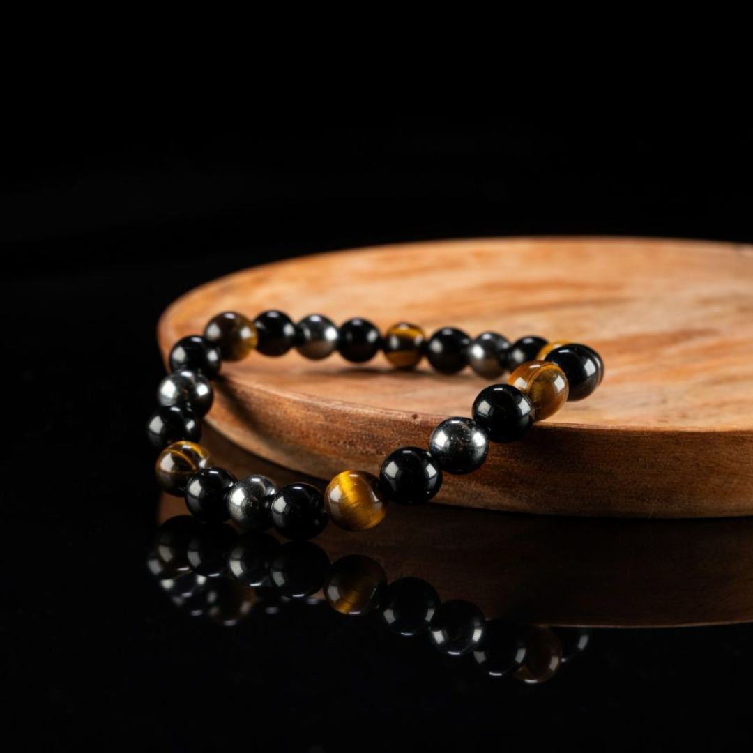 - Pulsera Triple Protección: combinación sagrada de piedras que ayuda a resguardar tu energía de influencias negativas y mantener el equilibrio interior. Llévala puesta diariamente para fortalecer tu campo energético.